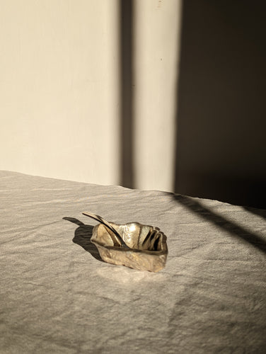 A heavy silver oyster dish with spoon