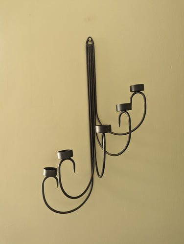 A pair of black metal tealight wall sconces