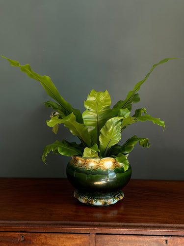Antique Red Majolica Cabbage Leaf Plant Pot