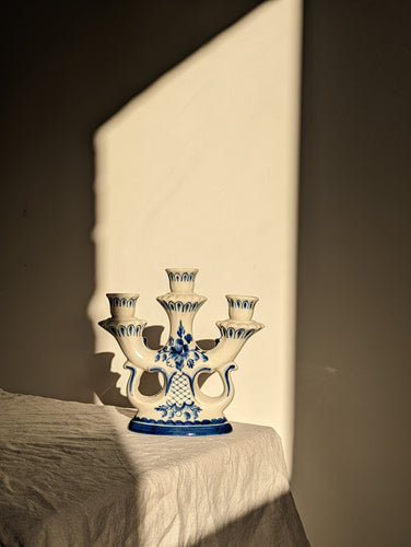 Antique Russian Gzhel Hand Painted Porcelain Candlestick holder