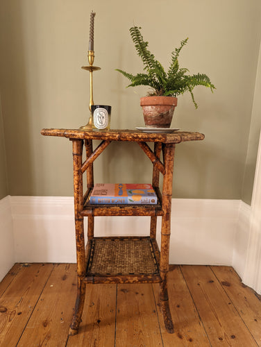 Antique Victorian 3 tier bamboo side table with octagonal table top