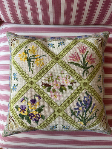Vintage Square Shaped Embroidery Anglaise Cushion