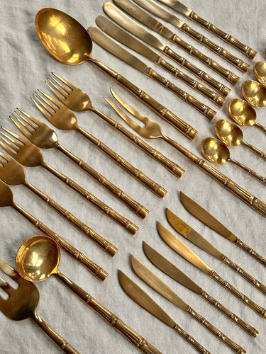Vintage 1970s Bamboo Bronze Cutlery Set (133 pieces)
